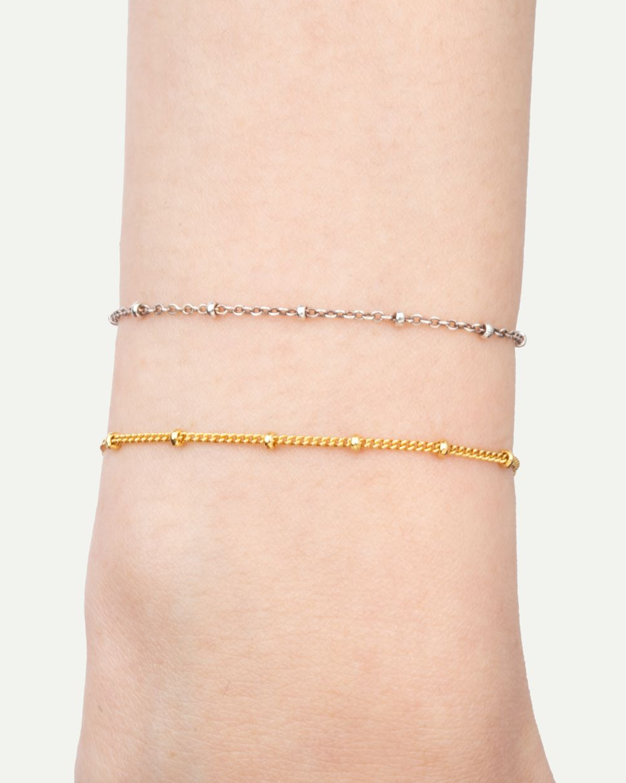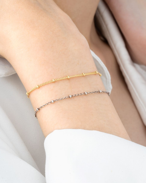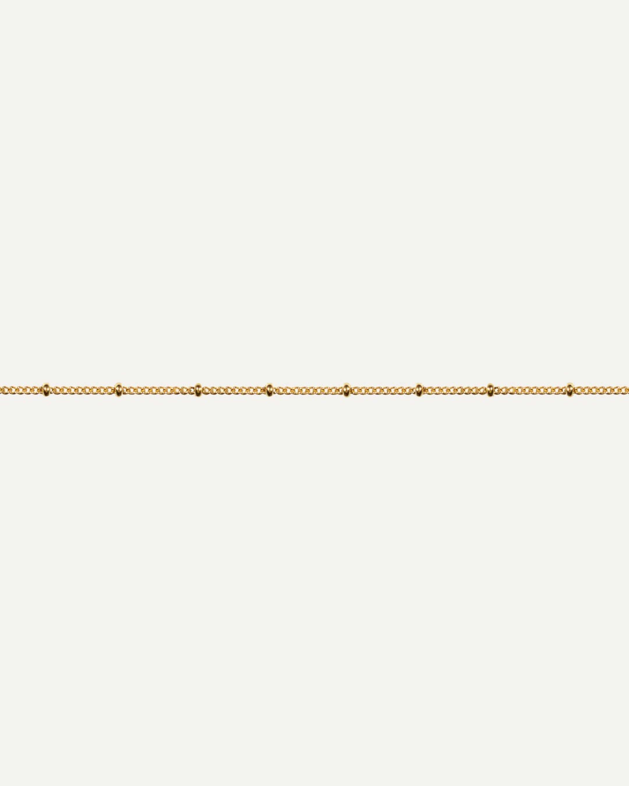 The Foreva™ Spheres Permanent Jewellery Chain small, evenly spaced beads or spheres along a thin cable chain, resembling tiny satellites orbiting around it. This delicate design provides a unique texture and adds an elegant touch to any ensemble. As our all-time best seller, this Chain is beloved for its versatility and timeless appeal, making it a perfect choice for both everyday wear and special occasions.