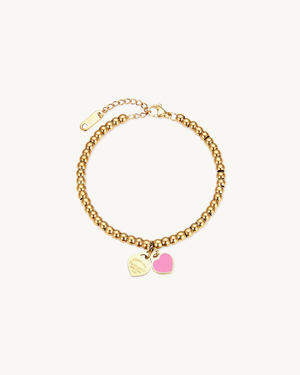 Home AUREUS™ Double Heart Charm Bracelet – Gold + Pink