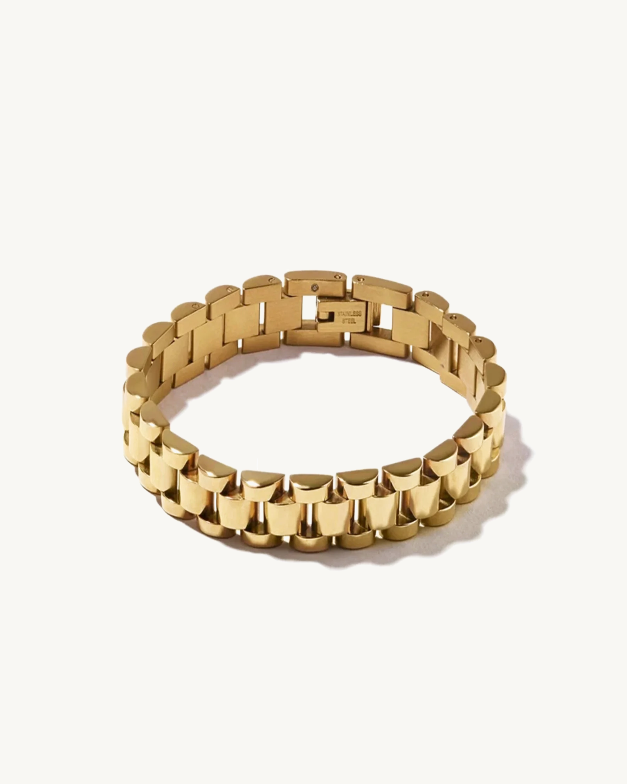 The Sleek Link Gold Bracelet features a slimmer 10mm link design for a modern, elegant touch while maintaining masculine appeal. Made from 316L stainless steel with IP gold plating, this bracelet offers a lasting golden shine that’s resistant to fading and scratches.