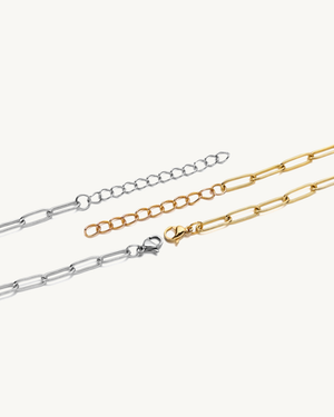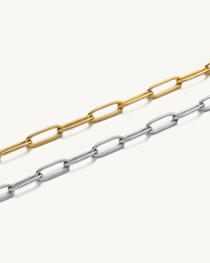 CELESTE™ Paperclip Chain Bracelet features sleek elongated links crafted from high-quality stainless steel, designed to stay polished and bright through daily wear. Its lightweight yet durable construction makes it perfect for stacking, layering, or wearing solo.